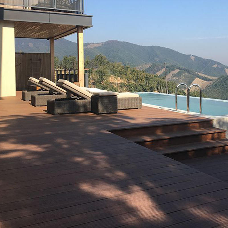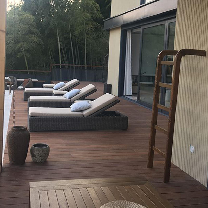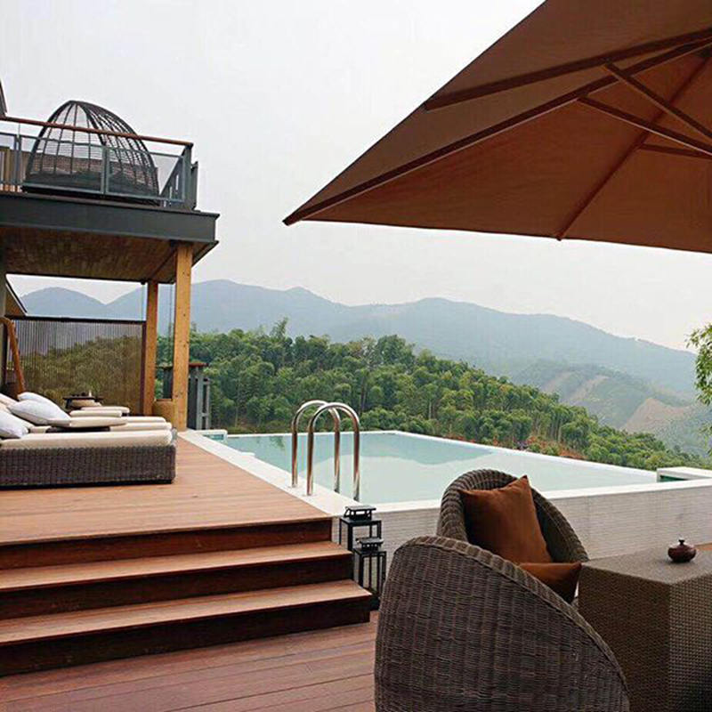 Vonkajšie bambusové terasy pri bazéne v Huzhou
